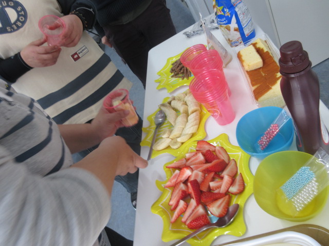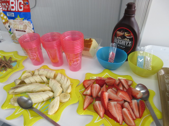 ほほえみではみんなで🍫🍦パフェ🍦🍫作りをしてみましたよ😍