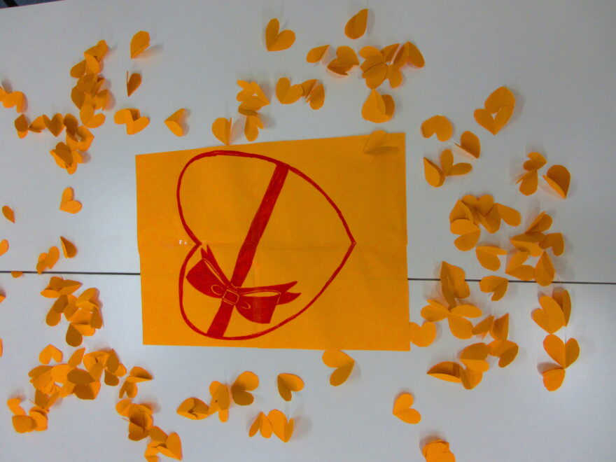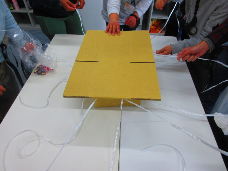 最後はみんなで一斉に紐を引っ張りどのチョコが当たるかはお楽しみのゲームです