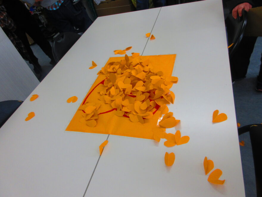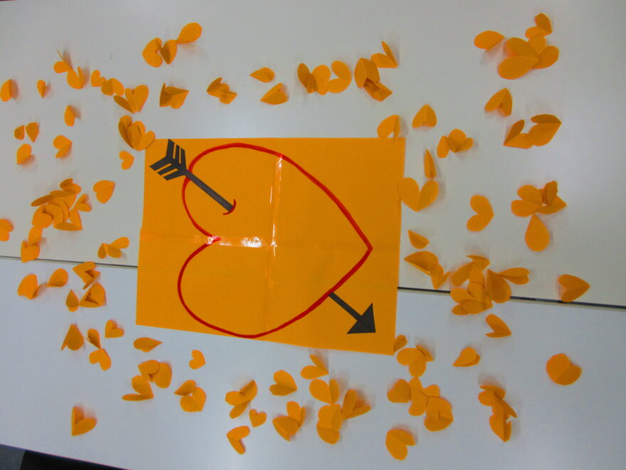 真ん中のハートに小さいハートをたくさん乗せたチームの勝ち!!