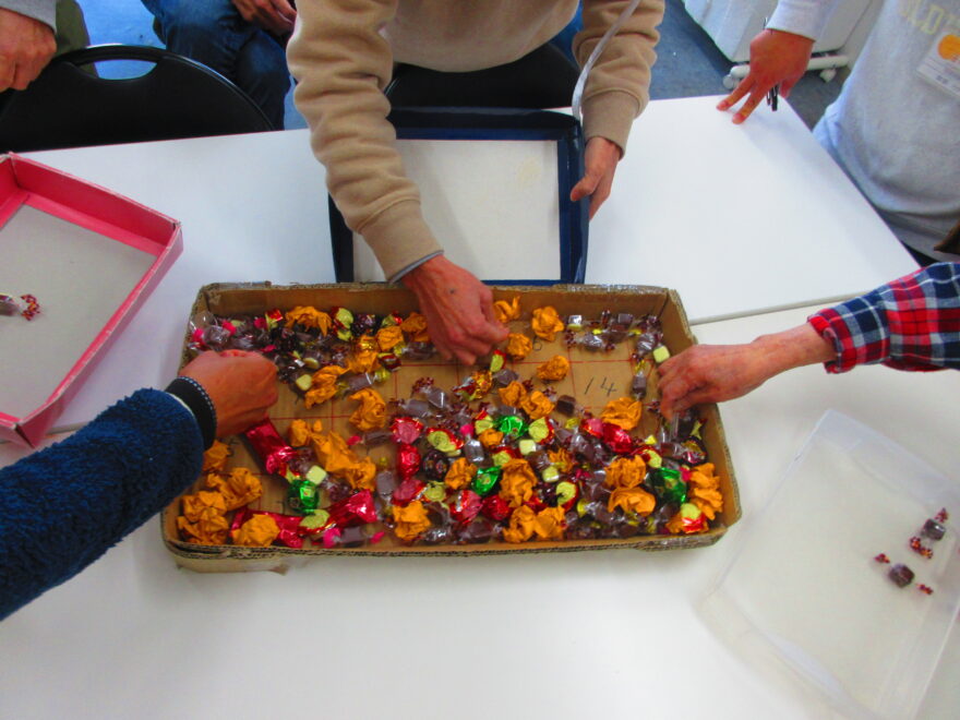ゲームが始まる前に少し練習をしている方や目隠しをする前に大きいチョコはどこにあるか確認してる方もいましたよ(*^▽^*)